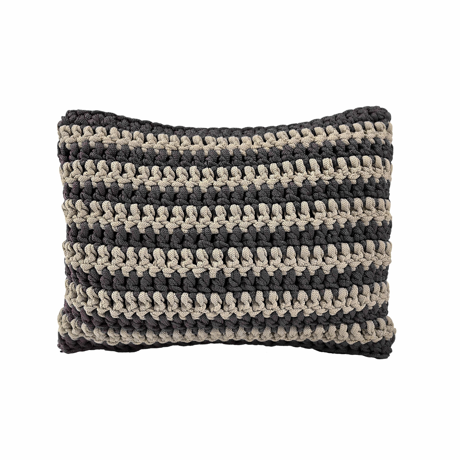 Almofada em Crochê Listra Retangular Outdoor 30x45 Cinza