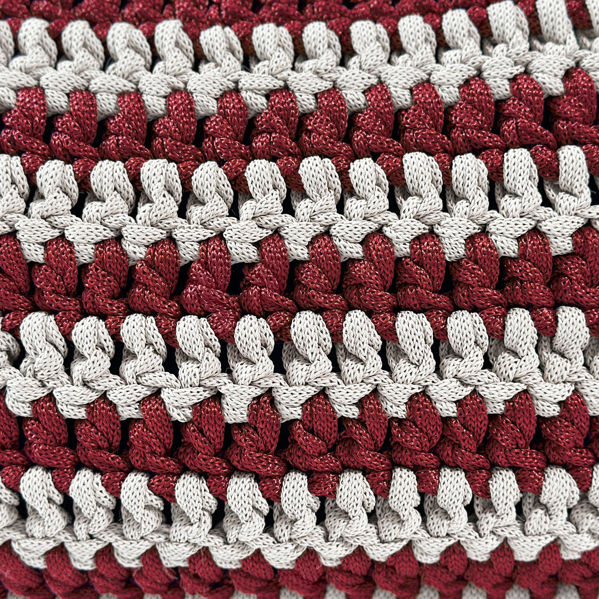 Almofada em crochê artesanal frente e verso, com fio náutico 100% polipropileno, resistente à água e proteção UV.