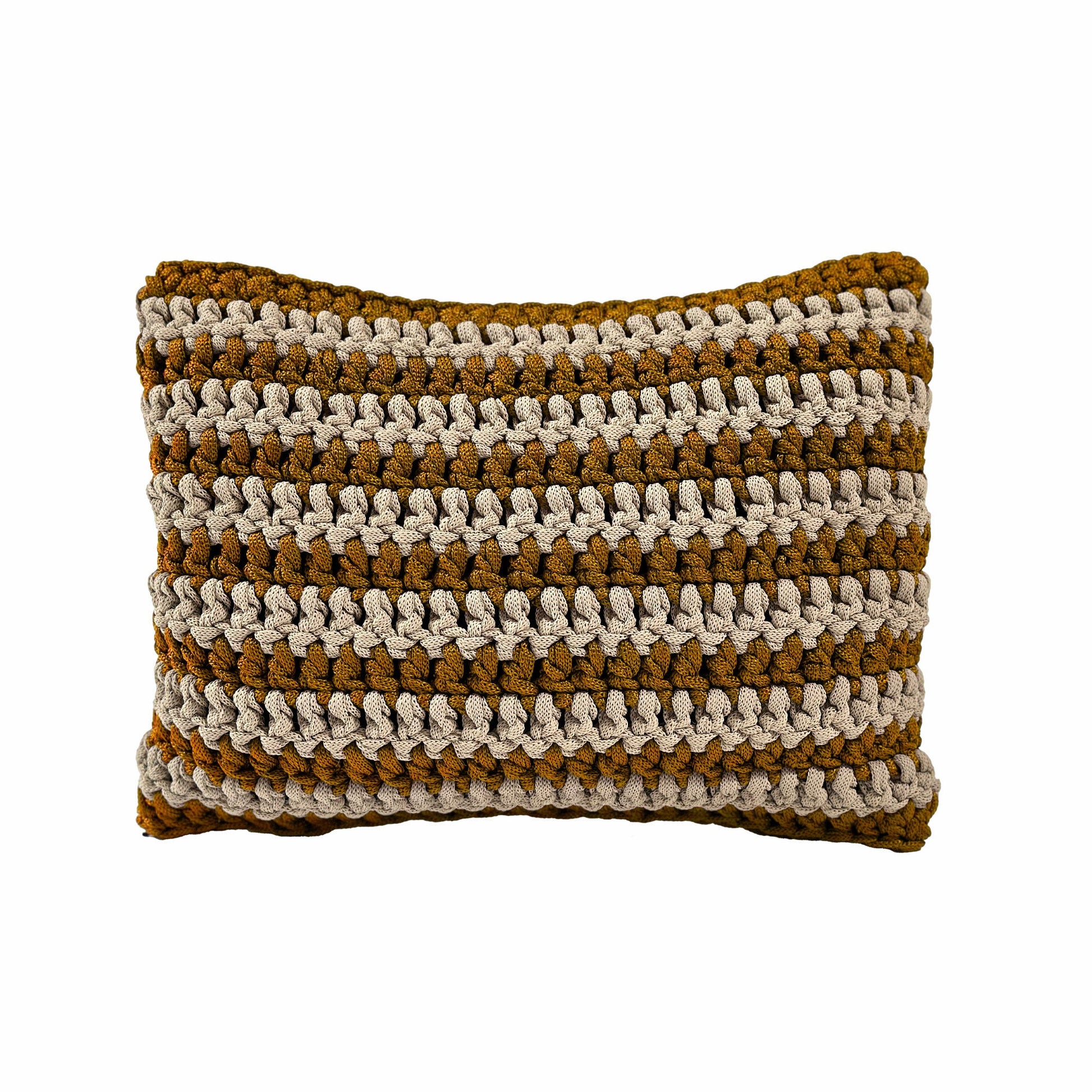 Almofada em Crochê Listra Retangular Outdoor 30x45 Mostarda Pronta Entrega