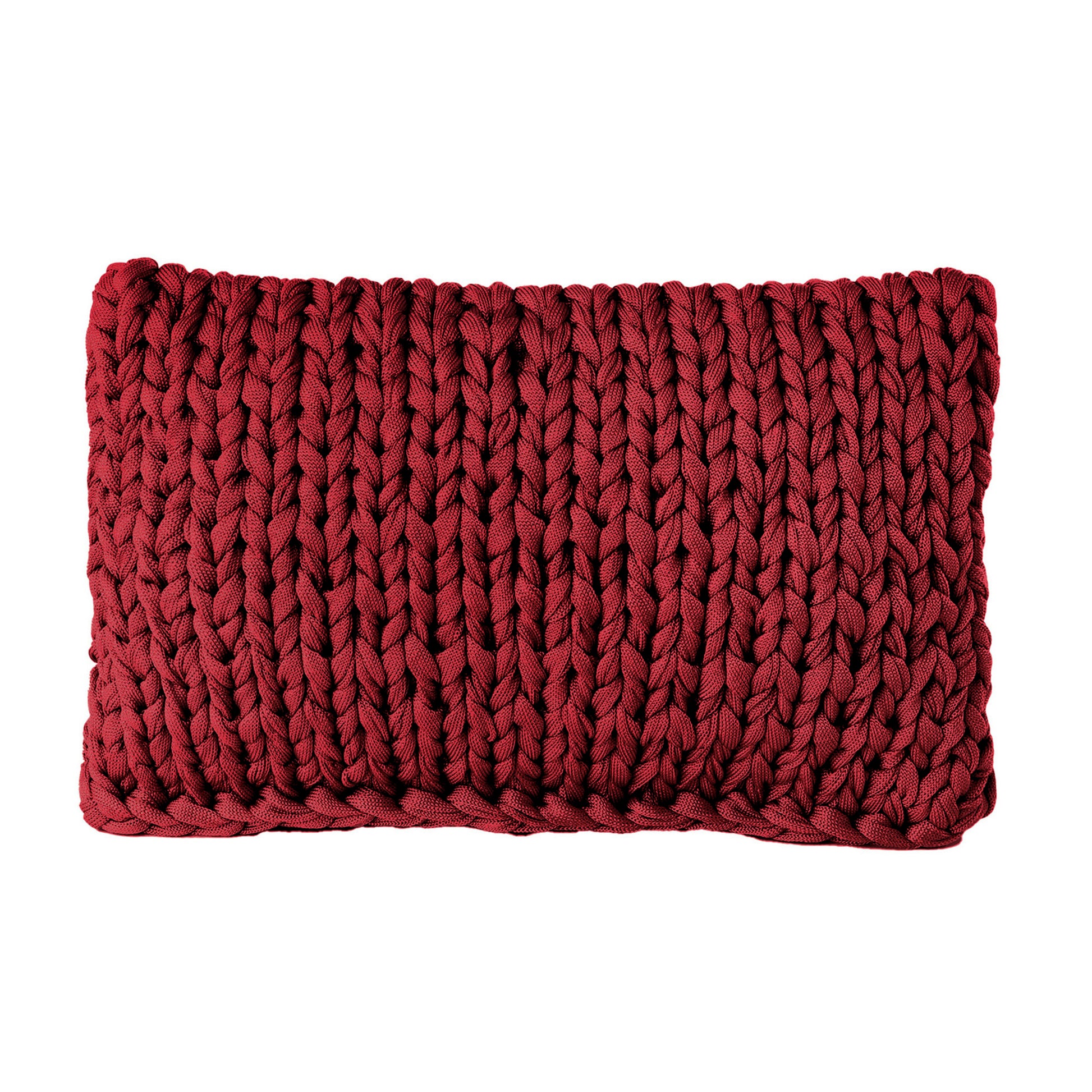 Almofada em tricô artesanal frente e verso, com fio náutico 100% polipropileno, resistente à água e proteção UV.