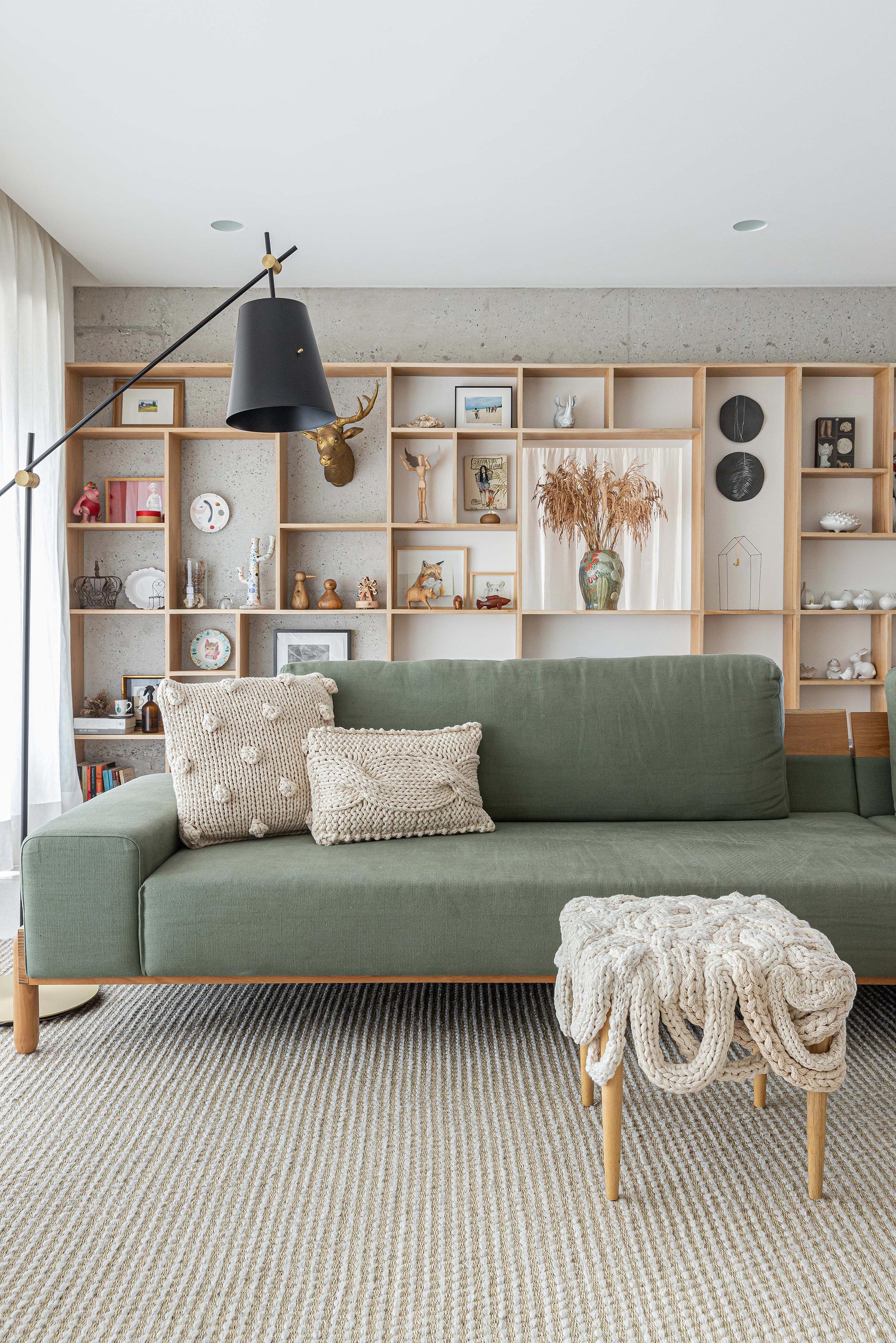 Assento com espuma revestida em tricô artesanal com mix de fios.