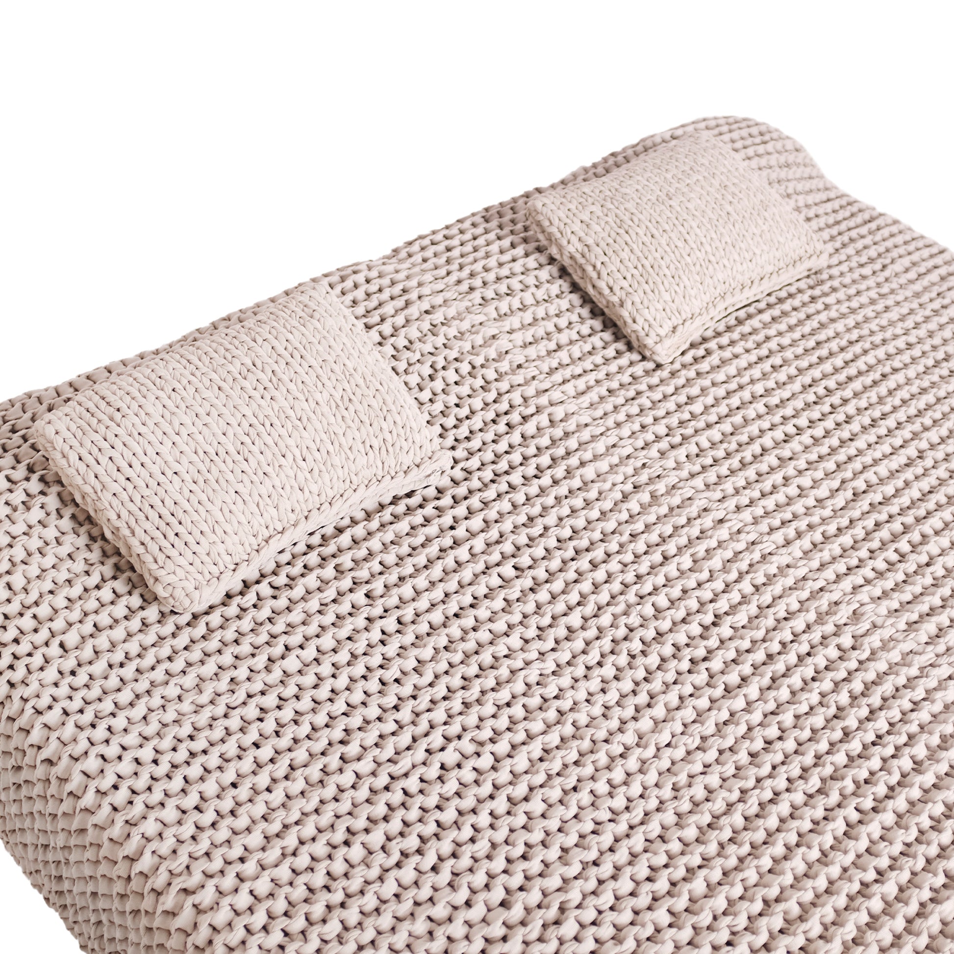 Day Bed em tricô artesanal com fio náutico 100% polipropileno, material com alta resistência, durabilidade e proteção UV.