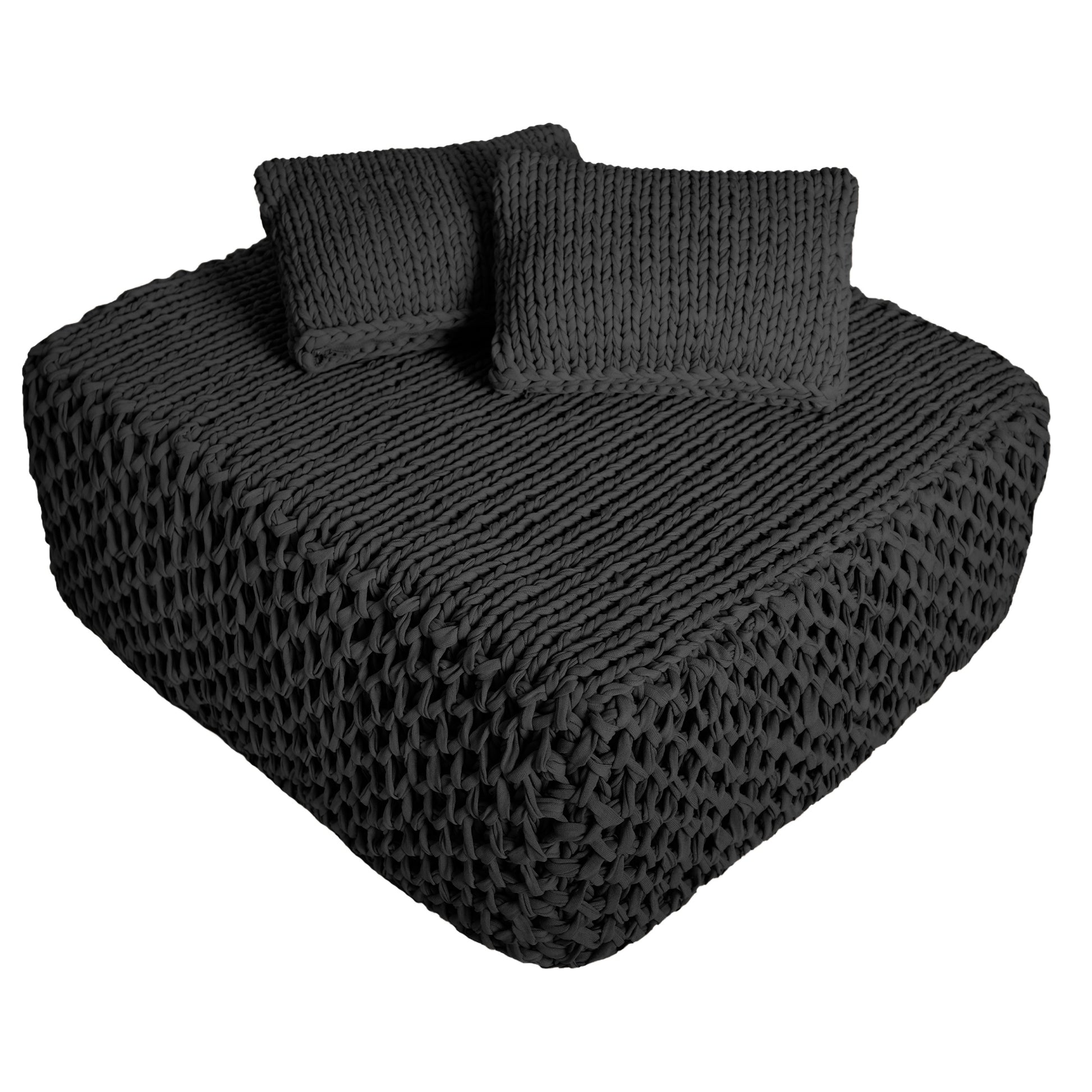 Puff em tricô artesanal com fio náutico 100% polipropileno, material com alta resistência, durabilidade e proteção UV.