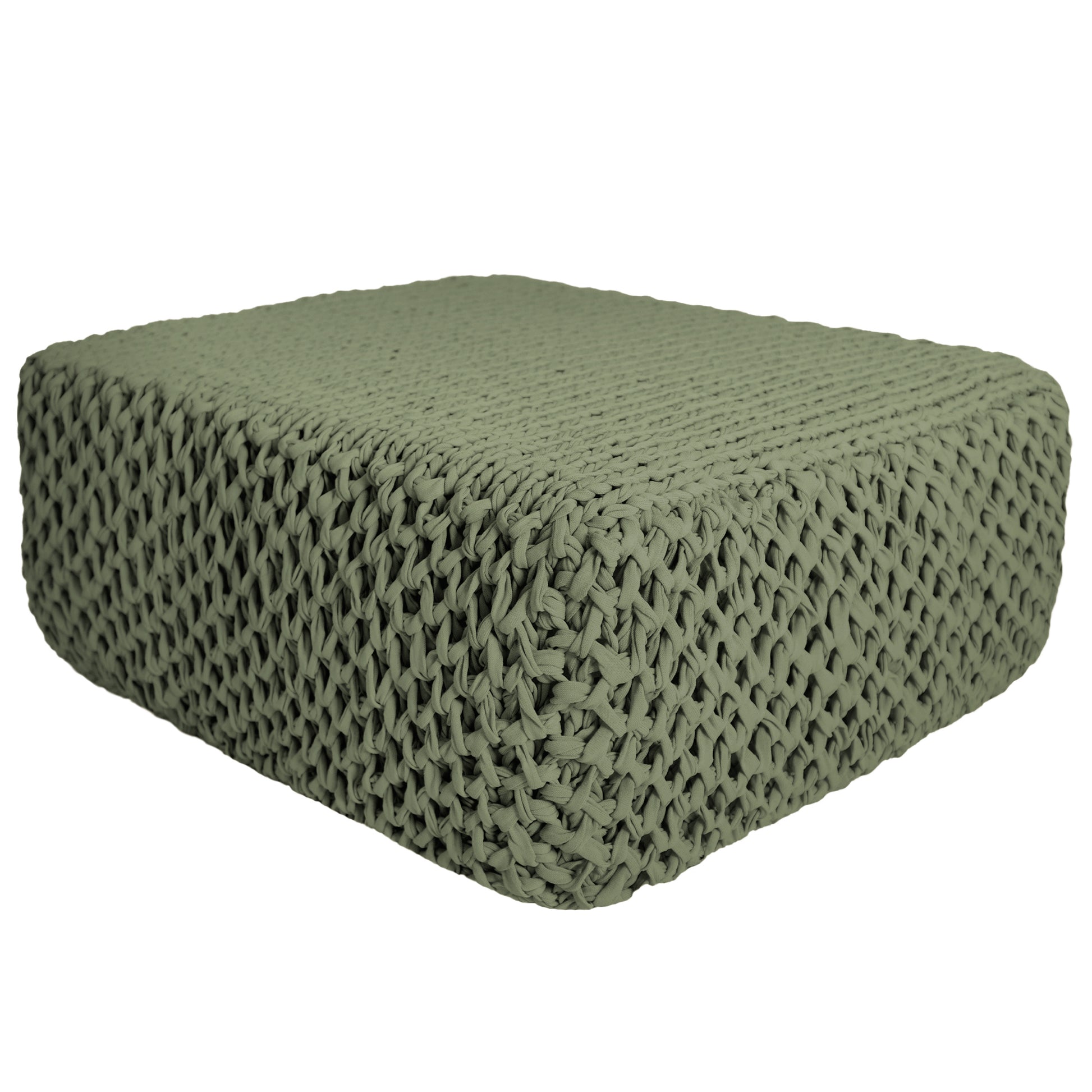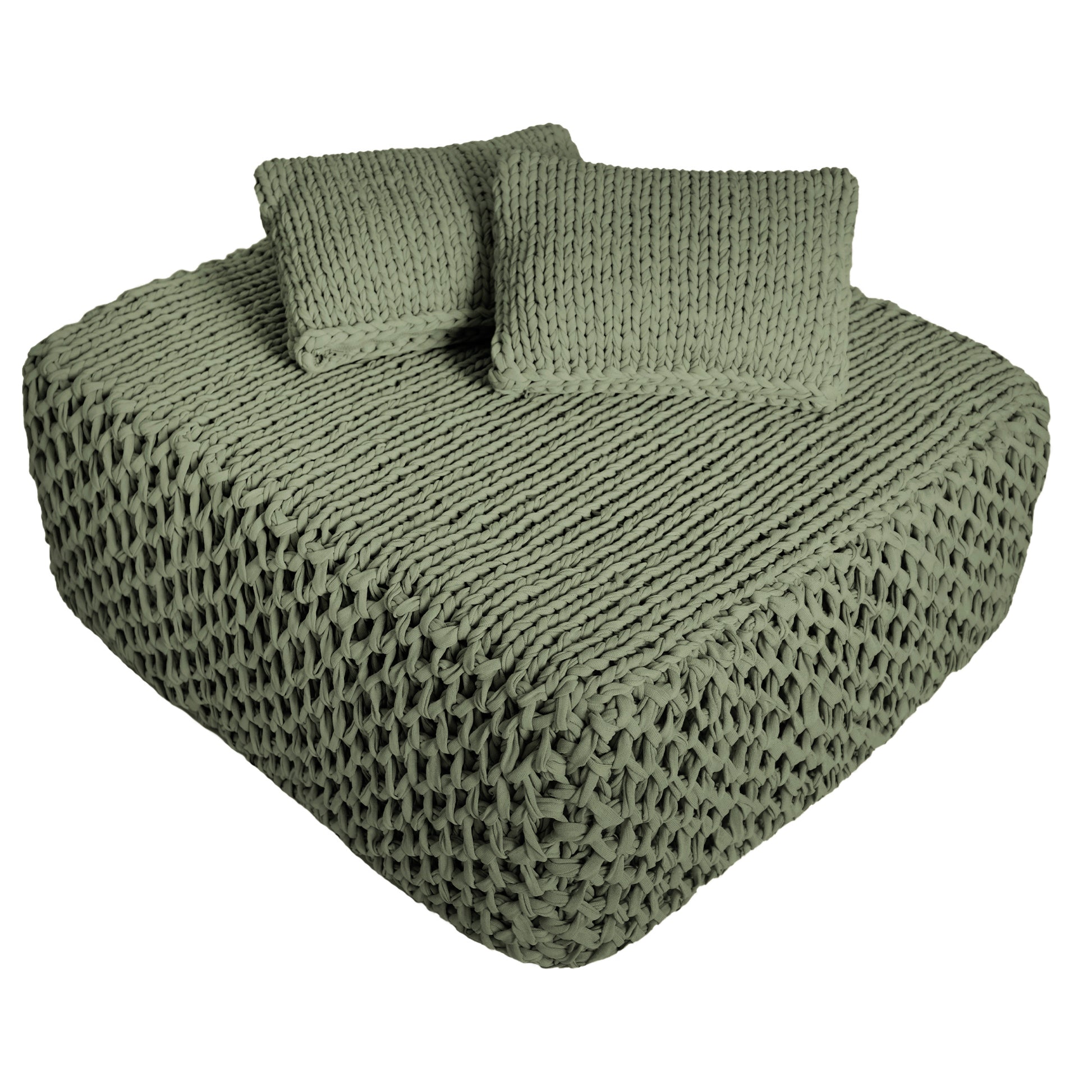 Puff em tricô artesanal com fio náutico 100% polipropileno, material com alta resistência, durabilidade e proteção UV.