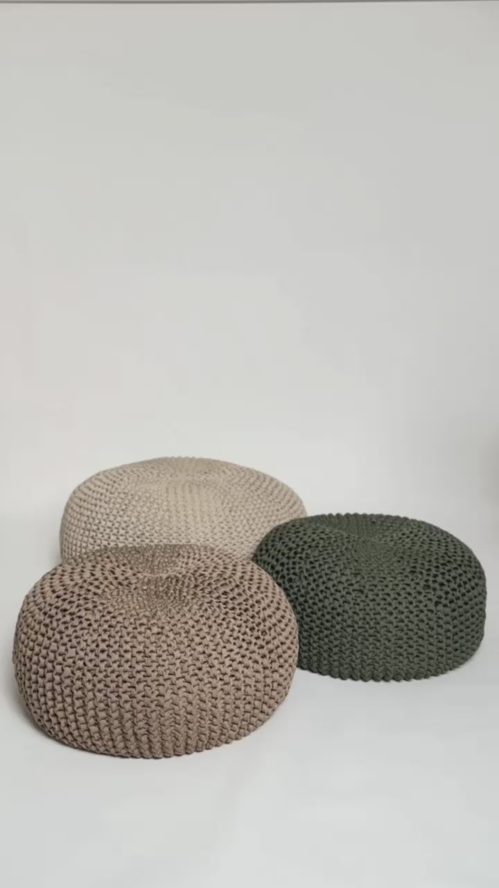 Puff em tricô artesanal com fio náutico 100% polipropileno, material com alta resistência, durabilidade e proteção UV.