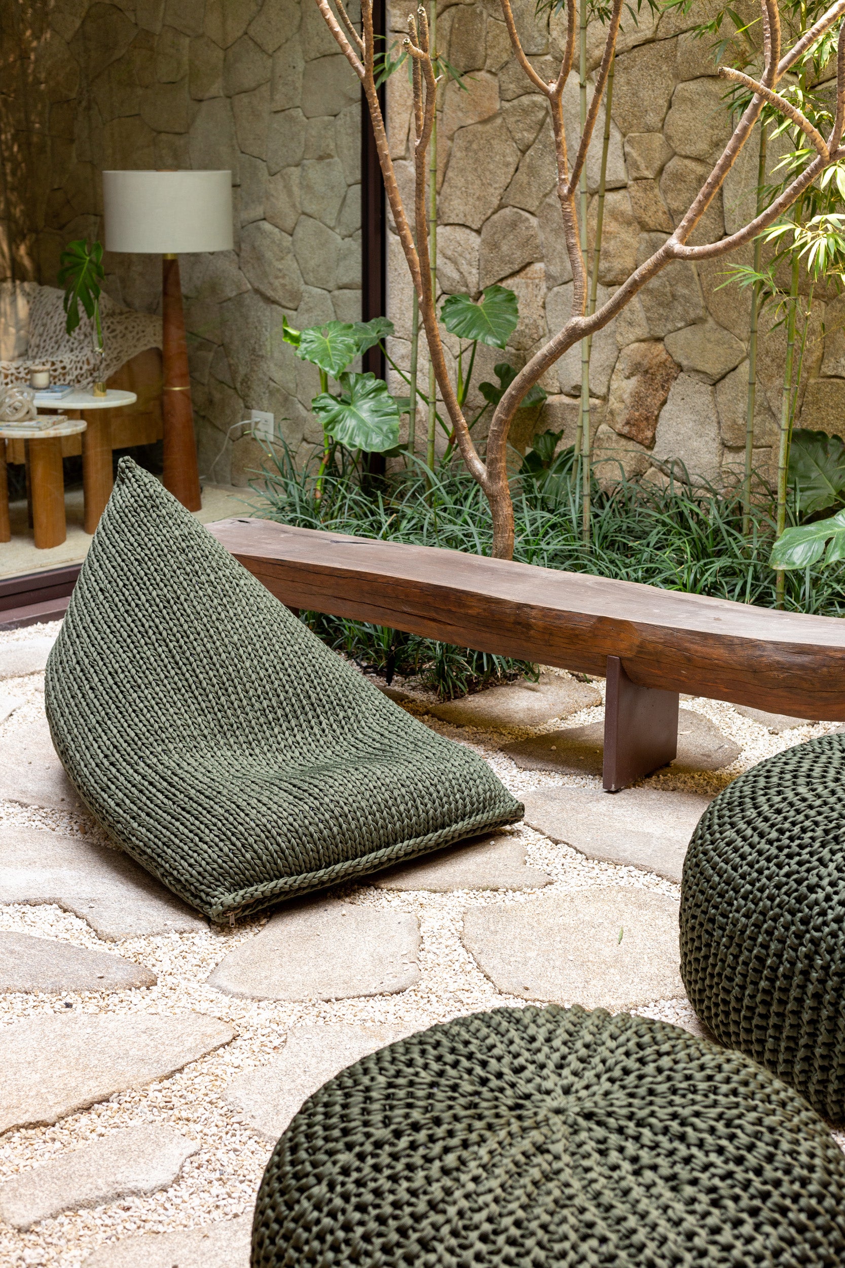 Transforme seu espaço externo com o charme e a sofisticação do Puff em Tricô Artesanal, ideal para compor a decoração de piscinas, jardins e áreas de lazer. Feito com fio náutico 100% polipropileno, ele combina resistência e conforto, garantindo beleza e funcionalidade para ambientes ao ar livre.
