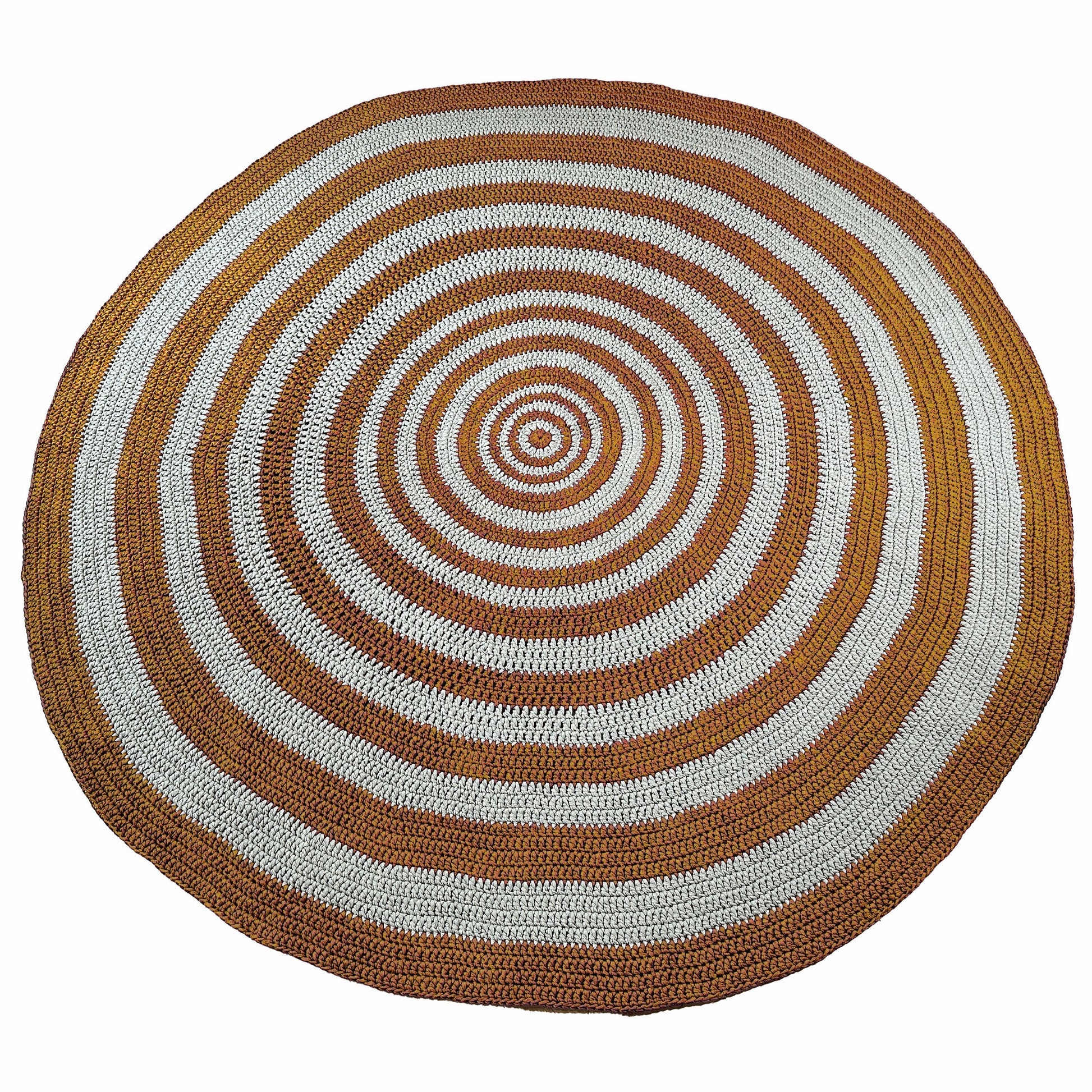Tapete em Crochê Listras Redondo Outdoor 280x280 Mostarda Pronta entrega