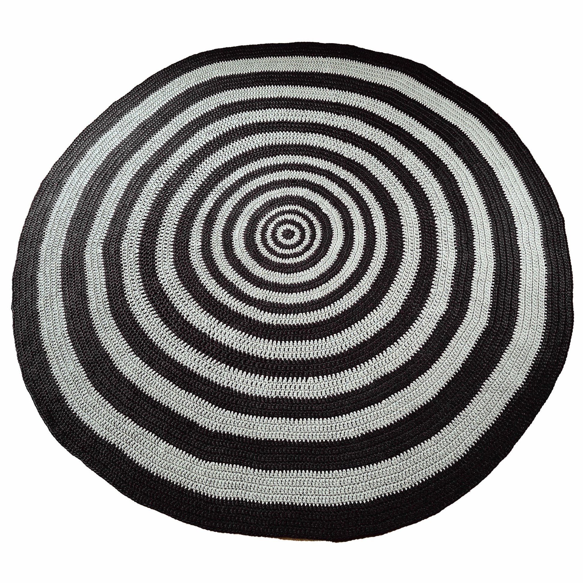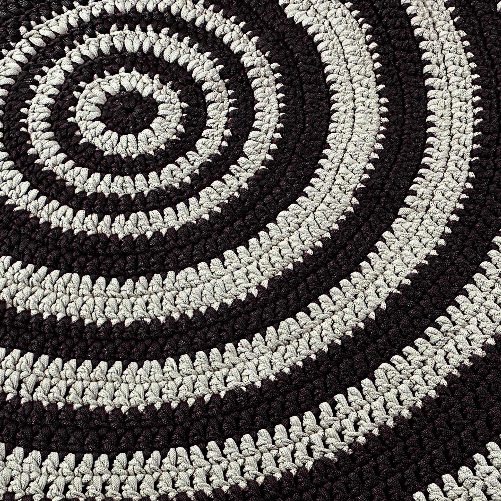 Tapete em Crochê Listras Redondo Outdoor 280x280 Preto Pronta Entrega